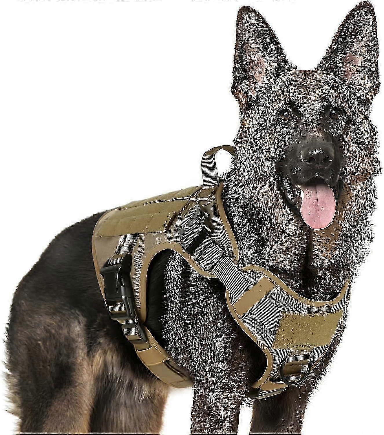 Large Dog Molle Vest: Neck Girth: 26.4 - 34.6 (67.1 - 87.9cm), Chest Girth: 33 - 41.3 (83.8 - 104.9cm), Belly Length: 13.3 - 17.7 (33.8 - 45cm), Back Length: 11.4 (29cm). Ideal for Large Breeds such as German Shepherds, Belgian Malinois, Golden Retrievers, Huskie, Labrador, Akita, etc. A professional working dog vest for service, police, or military dogs, but also suitable for hunting and all outdoor companion dogs Military-standard Material: Heavy duty vest made of 1050D Nylon with sturdy stitching for extra durability and wearability, suitable for all field use. Two Metal Shoulder Buckles can bear great pulling force, ensuring your dog is safely harnessed during training, hunting, working, and any other occasion. Well padded in every pressure load point to protect your dog, while the breathable air mesh keeps your dog ventilated and comfortable Practical Design For Versatile Use: Molle system equipped on both sides for pouches, water bottles, and tactical dog gear. Multiple Hook andamp Loop Panels for morale patches and badges to showcase your dogs personality. A wide range of use for personal service, law enforcement, hunting, or outdoor recreation Maximum Control andamp Security: The dog safety harness features 2 Metal Leash Attachment Points for safer dog walks - One Front Clip for No-Pull control or dog training, and one Back Clip for casual walking or jogging. Reinforced top handle for additional control and easy lifting aid in both general and treacherous situations Easy Use With Full Adjustment: Put on and take off this easy dog harness with 4 quick-release buckles with no hassle. 5 fully adjustable straps (2 Shoulders, 2 Chest, 1 Belly) allow a snug fit with maximum mobility