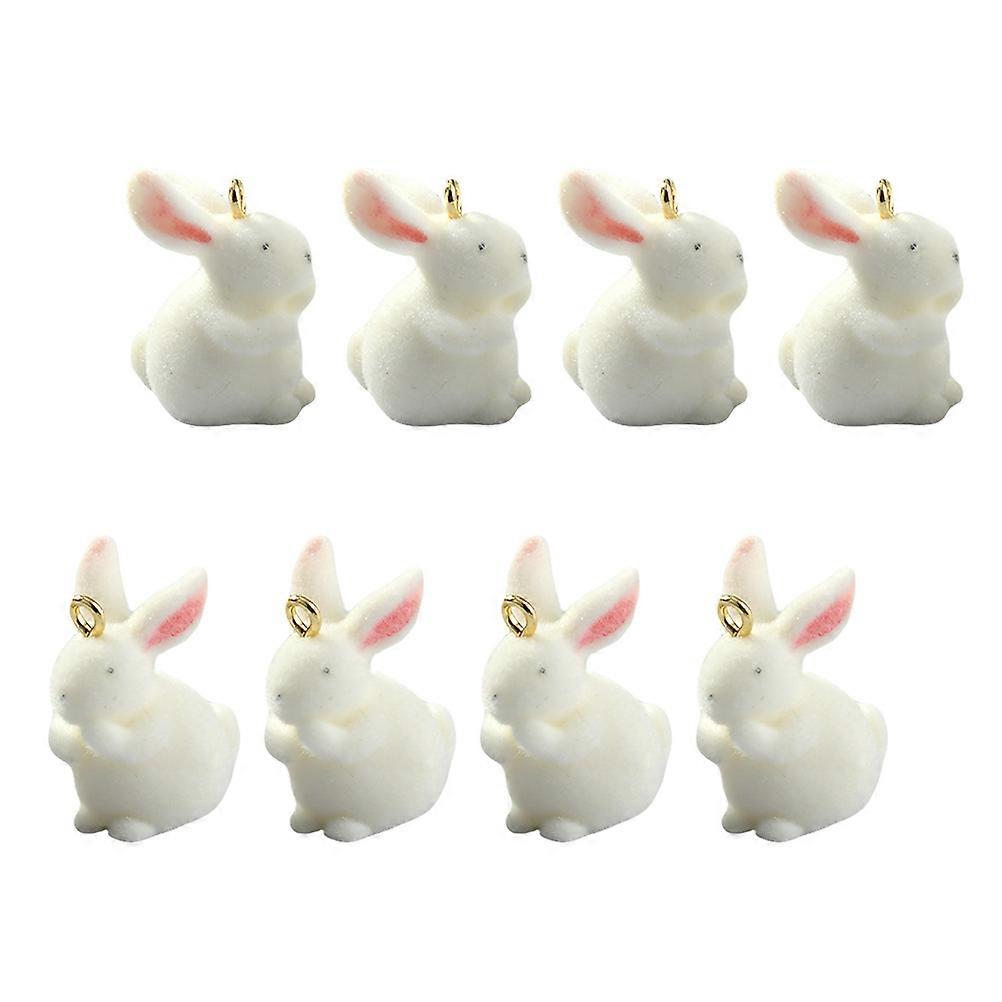 Adorable White Bunny Charms Made of Flocking and Resin for DIY Use 8Pcs