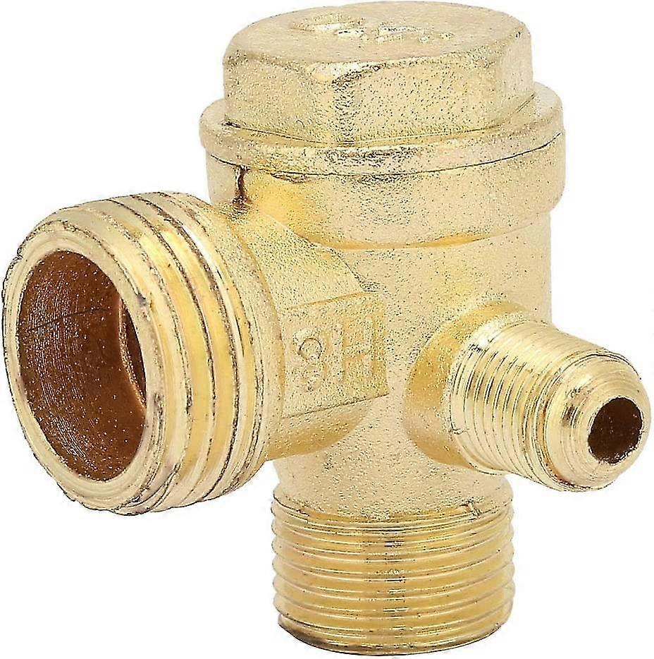 Three-way check valve: This air compressor check valve has three male threaded connectors to connect the air compressor Easy to install: This air compressor check valve is threaded and the end of connection is easy to install Alloy material: this air compressor check valve is made of zinc alloy, not easy to rust, safe and durable Thread : The three thread diameters of this air compressor check valve are 9.5-10mm, 16-16.5mm and 20-20.5mm respectively; external thread size is 1/2 inch, 3/8 inch Ideal Replacement: This air compressor check valve is better to replace the old air compressor check valve. air 1.This air compressor check valve has three male thread connectors to connect the air compressor. 2 .This air compressor check valve is threaded and the connection end is easy to install. 3.This air compressor check valve is made of zinc alloy. 4.The three thread diameters of this air compressor check valve are respectively 9.5-10mm, 16 -16.5mm and 20-20.5mm. 5.This air compressor check valve is better to replace the old check valve of the air compressor. Specifications: Product Name: Air Compressor Check Valve Material: Zinc Alloy Color: gold Thread diameter: 9.5-10mm 16-16.5mm 20-20.5mm Total size: 42 x 39 mm Male thread: 1/2" 3/8" Hex Head Size: 18mm Note: Please allow a little size error due to manual measurement. Package Included: 1 x Air Compressor Check Valve