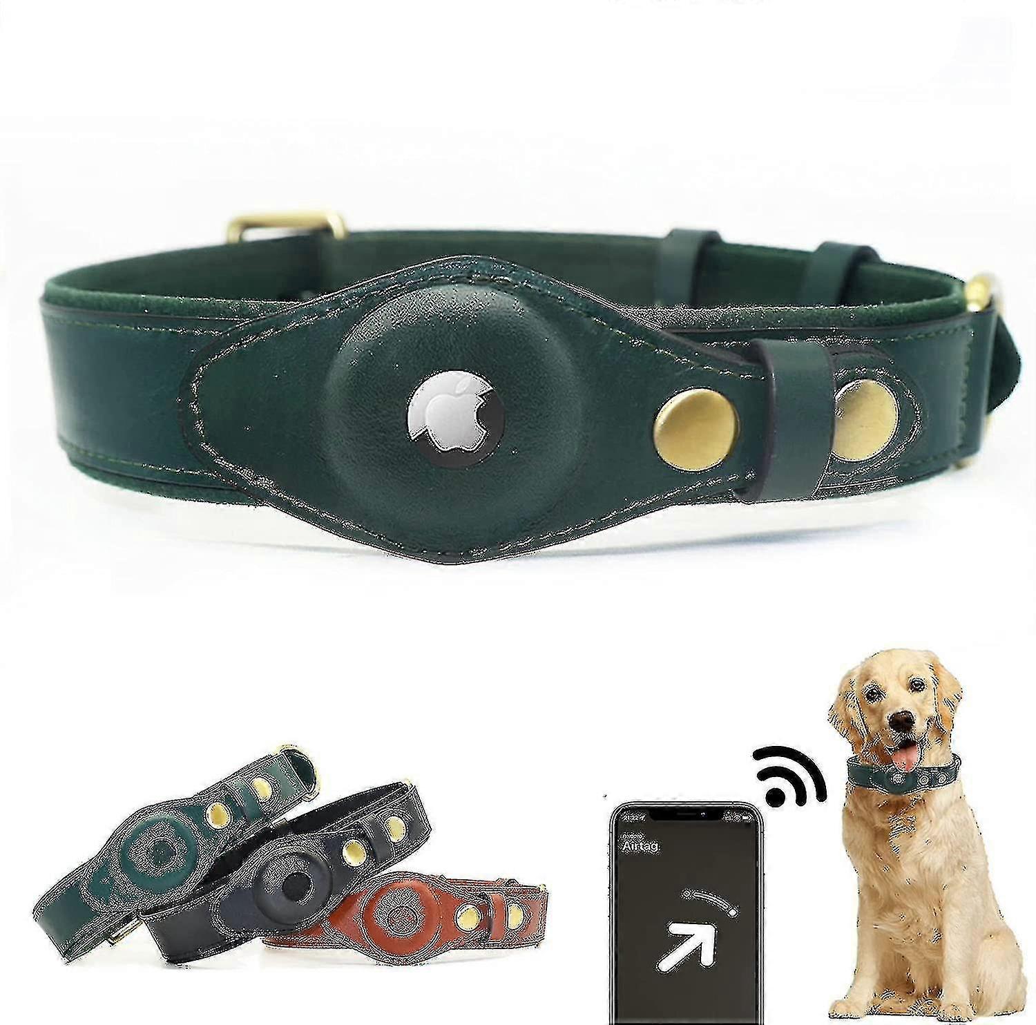 Airtag Dog Collar, Adjustable Natural Cowhide Leather Dog Collar Stand Compatible With Airtag, Compatible With Small Medium And Large Dog Cat