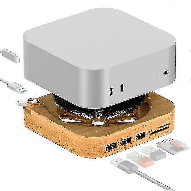 AJM4-FH For Mac Mini M4 / M4 Pro Wooden Expansion Dock USB 3.0 Hub TF / SD Card Reader Anti-Dust Stand