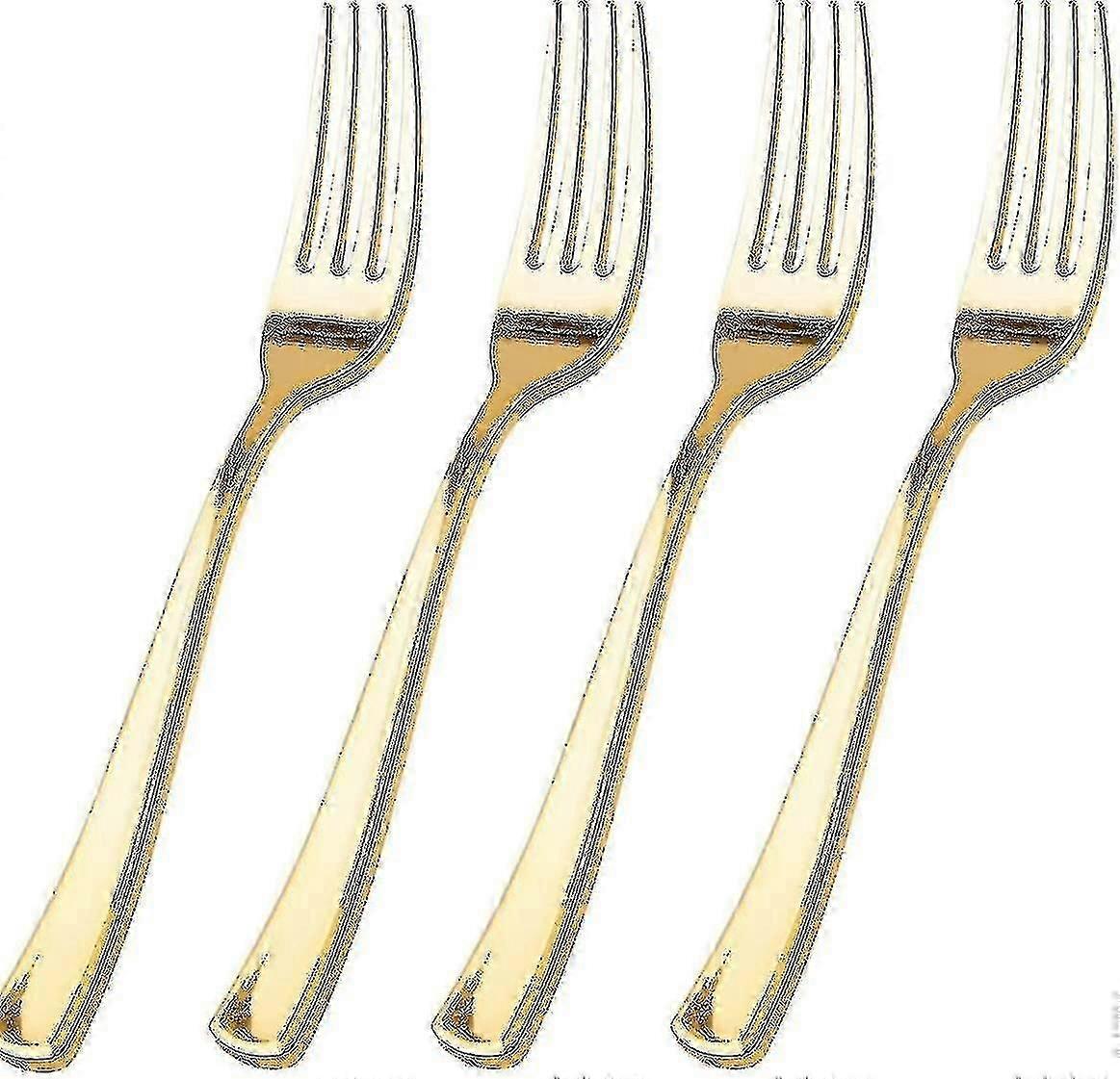 Althee 100 Piece Gold Plastic Forks - 7.4inch Gold Forks Disposable - Gold Plastic Silverware