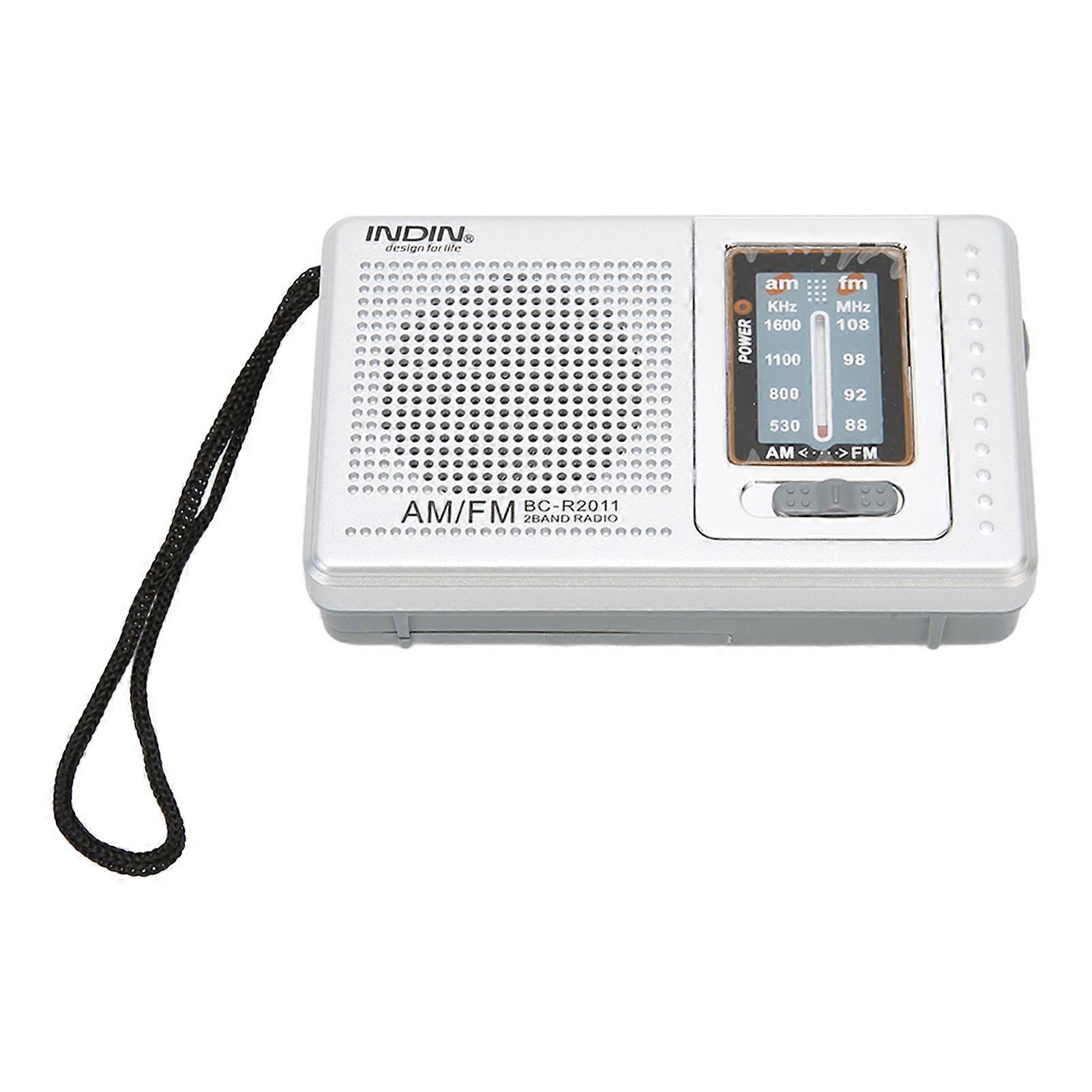 AM FM Radio Battery Operated Built in Speaker Portable Pocket Radio for Outdoor Travel Silver Grey