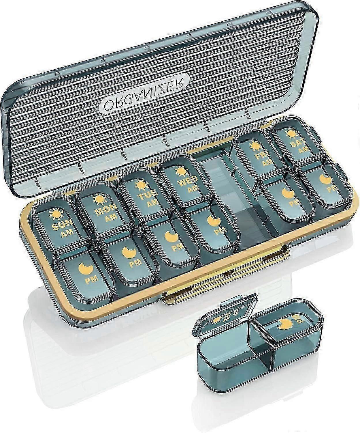 AM/PM Pill Organizer 7 Day, Pill Box 2 Times A Day - Weekly Pill Organizer Twice A Day with Large Compartment, Portable Daily Medicine Container Case