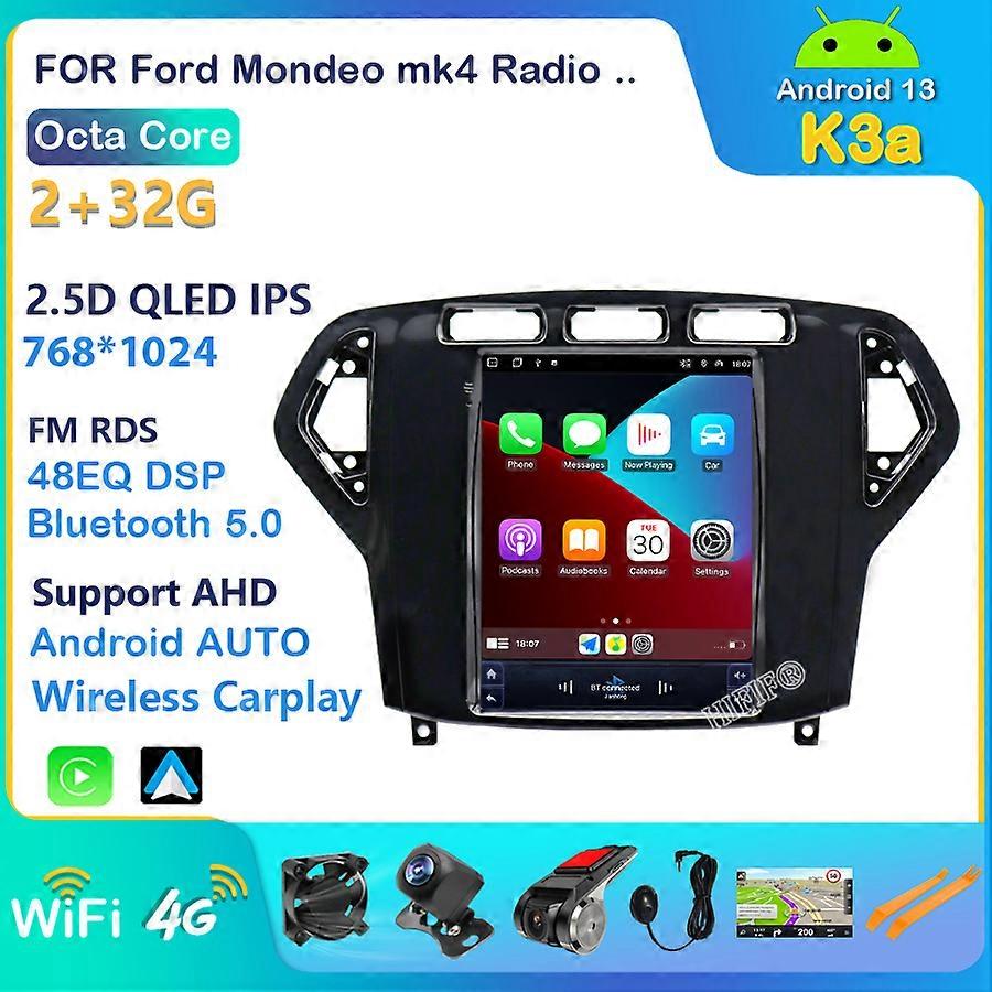 Android 13 Car Radio for Ford Mondeo mk4 Galaxy A/C 2007-2010 Multimedia Video 2Din 10.4" 4G WIFI GPS Carplay Navigation DSP