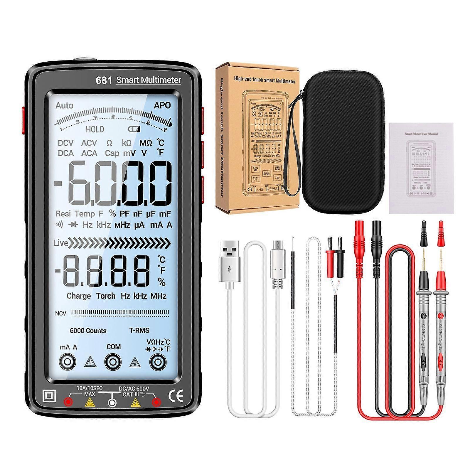 ANENG 681 6000 Counts Digital Multimeter Smart Anti-burn Rechargeable Universal Meter NCV Tester 5-inch Large LCD with Backlit Flashlight for Voltage