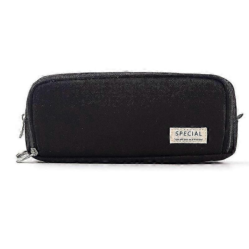 ANGOO Capacity Pencil Case 3 Compartment Pouch Pen Bag for School Teen Girl Boy Men Women (Black)