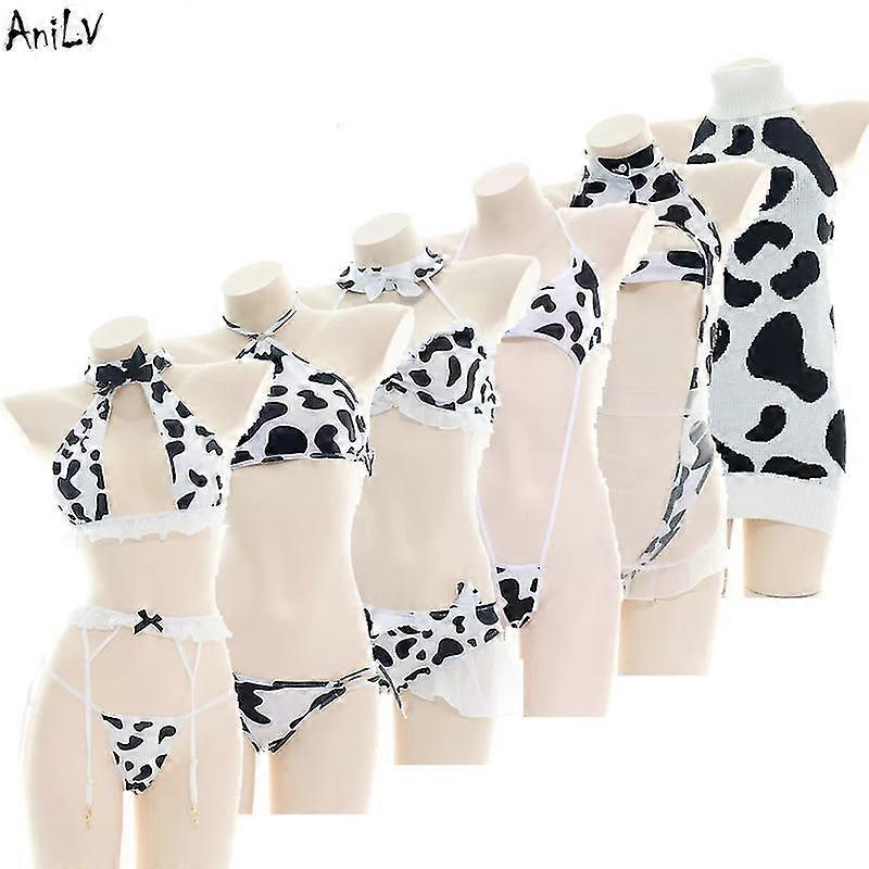 Anilv Cow Series Swimsuit Bodysuit Bikini Maid Unifrom Costume Summer Beach Kawaii Girl Swimwear Skirt Uniform Set Cosplay