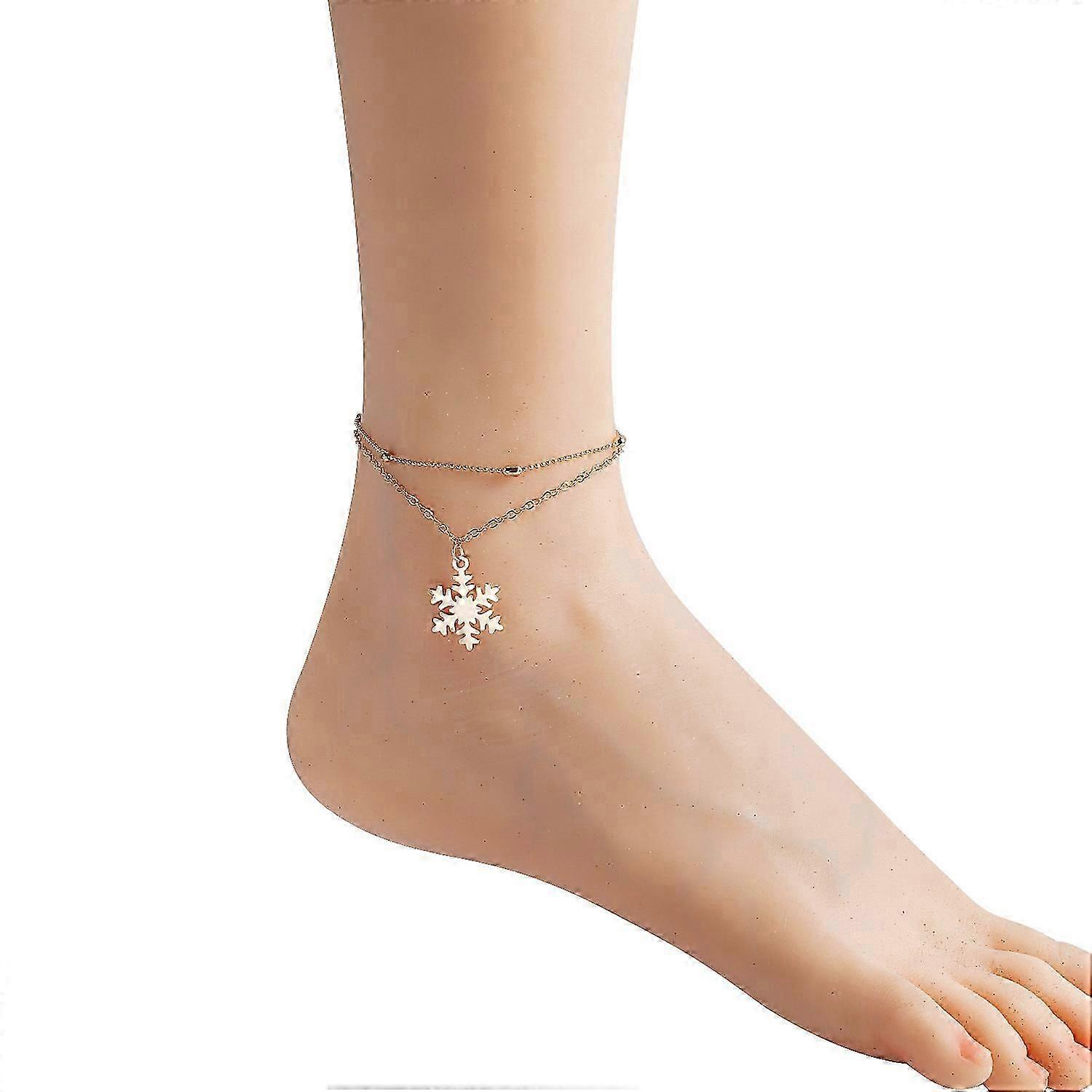 Anklet, Women's Christmas Element Snowflake Pendant Simple Double Layer Winter Jewelry