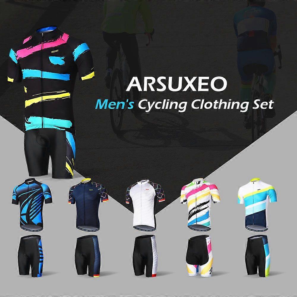ARSUXEO Men's Cycle Clothing Set Short Sleeve Set Quick-dry Shirt 3D Cushion Padded Short PantsYMQX)