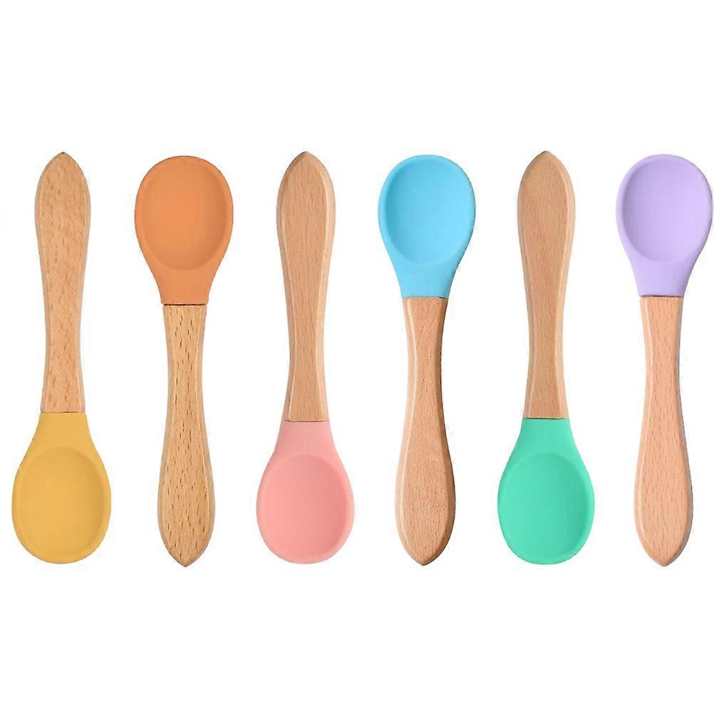 Assorted Feeding Spoons with Silicone Heads and Comfortable Hand Feel for Kids Use 6 Pcs