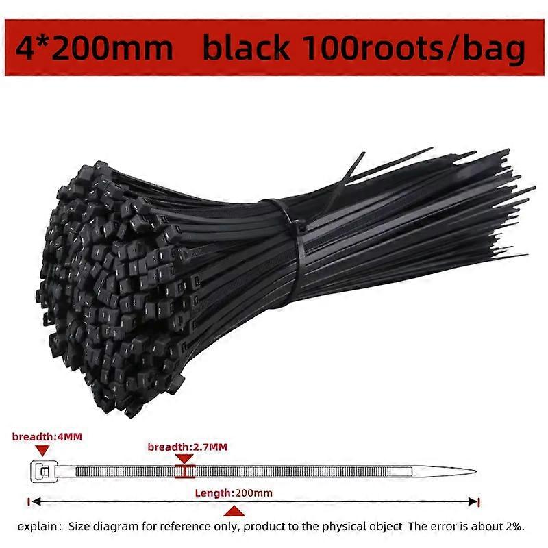 Attaches �� fermeture ��clair en Nylon noir, 100 pi��ces, 8x300mm, 5x300mm, anneaux de fixation autobloquants, id��aux pour l'organisation des c
