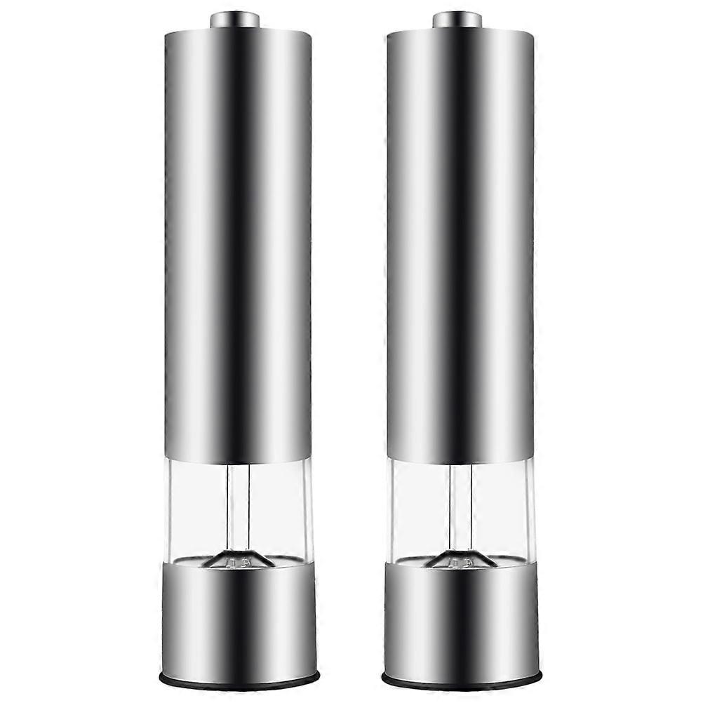 Automatic Pepper Grinder Electric Operation Pepper Mill Ceramic Home Use Silver 2Pcs