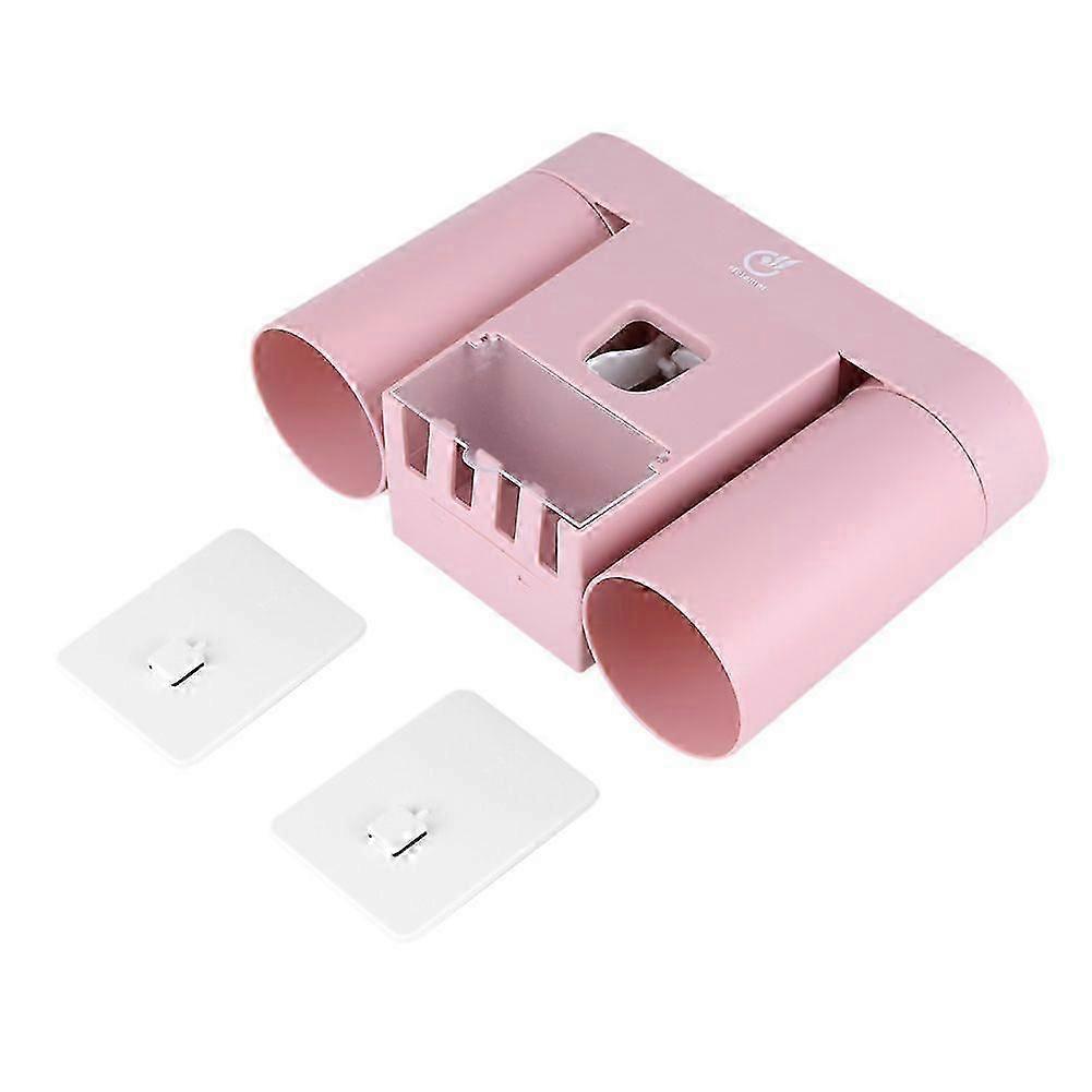 Automatic Toothpaste Squeezer Dispenser Wall-mount Toothbrush Holder Storage Rack (Pink)