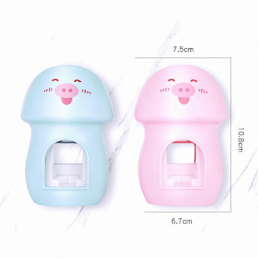 Automatic Toothpaste Squeezer Pig Design with Toothbrush Holder 1Pcs Pink