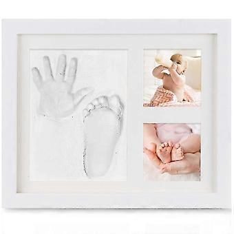 Baby Handprint and Footprint Frame, Wooden Keepsake with Plaster Cast for Baby's First Prints
