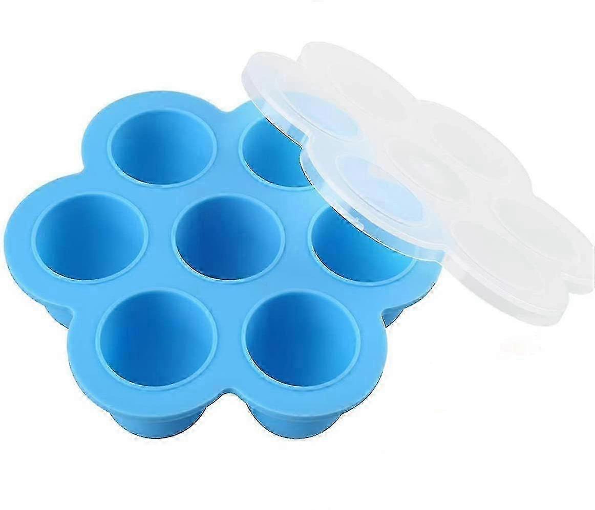 Baby Meal Food Container Freezing Container, 7 Storage Jars Ice Mold with Silicone Lid, Set of 1 (Blue)