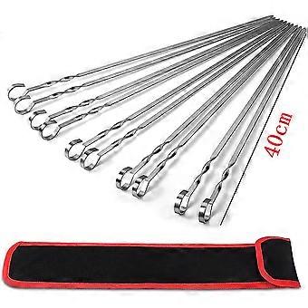 Barbecue Skewers - Set Of 10 Stainless Steel Kebab Skewers Bbq Sticks,40cm Flat Reusable Shish Kabob Skewers