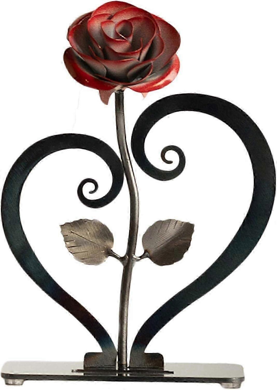 Barsinfi Gift Hand-forged Wrought Iron Red Metal Rose With Heart - Shaped Stand
