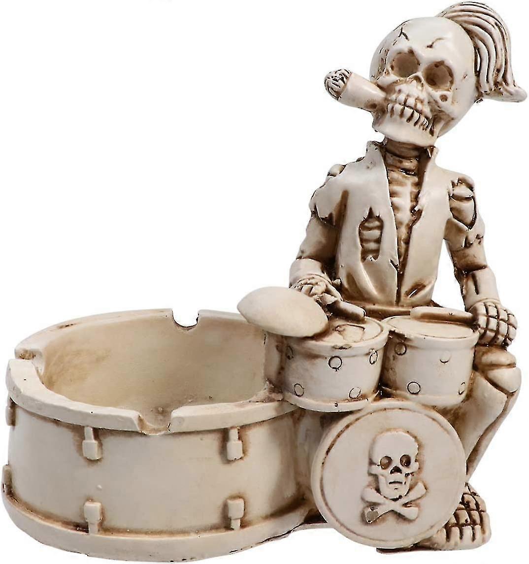 Cigarette Ashtray Resin Skeleton Skull Drummer Spooky Ashtray Decorations Art For Home Decor Barware Smoking Receptacles