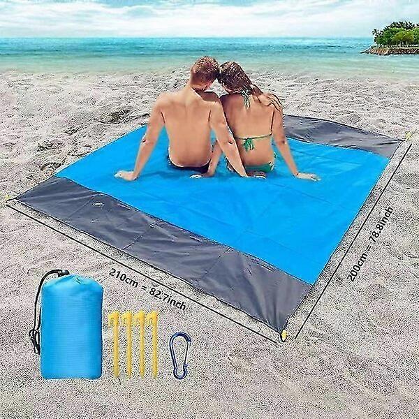 1. Beach picnic mat, 200x210cm (blue). It is an ultra - light beach blanket, waterproof for outdoor use. It is suitable for the beach, camping, and it is portable and quick - drying. 2. Small, lightweight and durable: Our beach mat can be folded. It is small, lightweight and easy to carry. The folded size is 16 x 7 x 7 cm. It can be easily hung on a mountaineering bag or put in a pocket. It is very suitable for family vacations and trips. It is ideal for outdoor equipment, travel gear and beach supplies. 3. Large enough: The 210 cm x 200 cm beach towel provides enough space for 4 - 7 people. You can use it when camping, hiking and having fun on the beach with your family/friends/lover. It is definitely a must - have for your beach trips! 4. Waterproof and sand - proof: Our sand - proof beach mat is made of 210T polyester. It is wear - resistant, quick - drying, tear - resistant, breathable and waterproof. It can effectively prevent sand from seeping into the mat from the bottom, which is perfect for your summer vacation. 5. Multi - purpose: Our folding blanket is not just a beach mat. It can also be used as a waterproof picnic blanket, a rain cover, a floor mat/travel emergency mat, a tent mat, etc. It is very suitable for the beach, picnics, family trips, outdoor festivals, camping and other outdoor activities and events. It is a must - have for your travels! 6. Thank you for purchasing products from our high - quality store. Have a nice day!