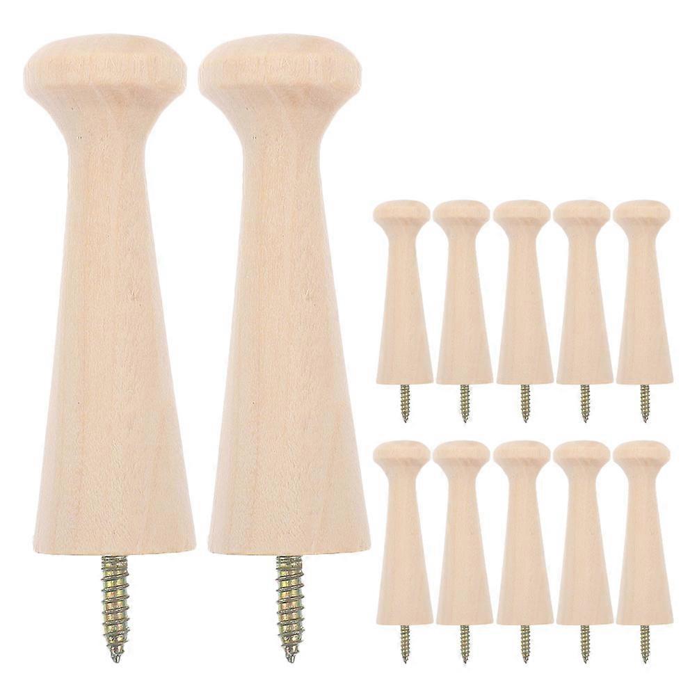 Beige Solid Wood Hooks for Hanging Clothes Featuring Screw-on Base 12Pcs