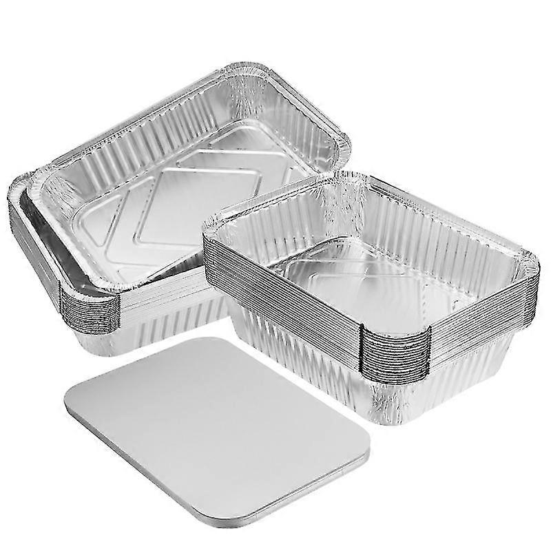 Bestonzon 20pcs Disposable Bbq Drip Pan Tray Aluminum Foil Tin Liners For Grease Catch Pans Replacement Liner Trays With Lid