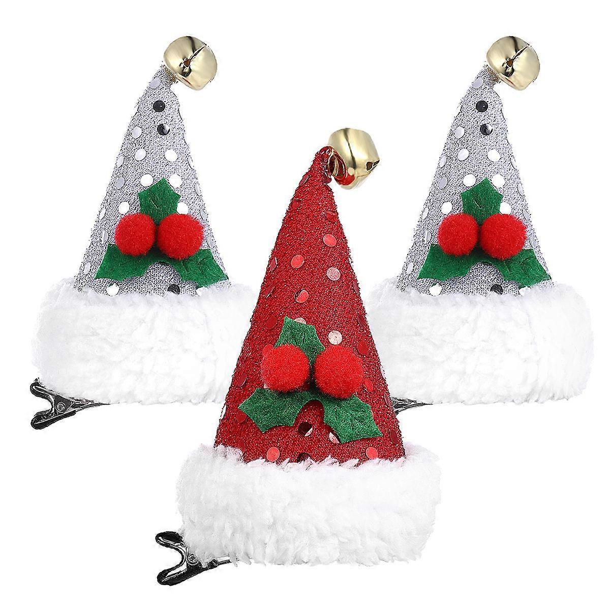Bestoyard 3Pcs Santa Hat Hair Clips Red Sequin Barrettes Festive Accessory for Girls and Women