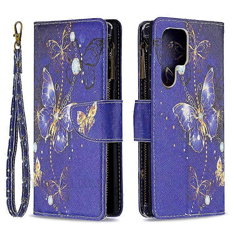 BF03 Pattern Printing PU Leather Magnetic Zipper Pocket Case Stand Flip Wallet Phone Cover with Strap Compatible For Samsung Galax