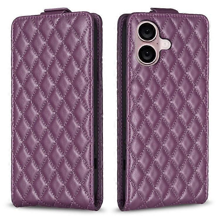 BF30 Compatible For iPhone 16 Vertical Flip Phone Case Rhombus Grid PU Leather Cell Phone Stand Cover