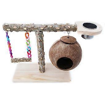 Bird Perch Playground Natural Wood Table Top Stand with Swing Feeder Cup Nest