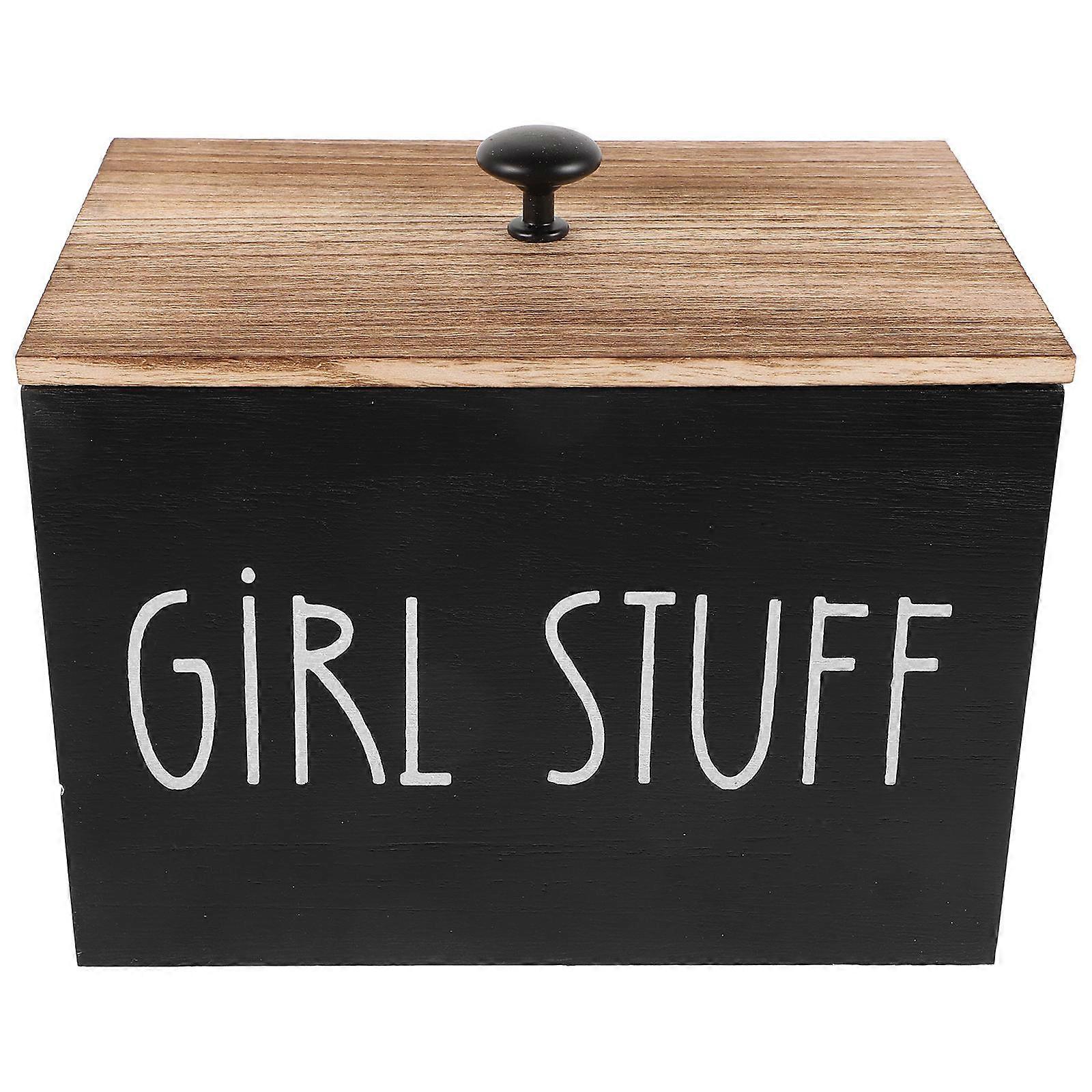 Black Wooden Storage Box for Cotton Swabs and Pads Compact Easy to Move and Space Saving