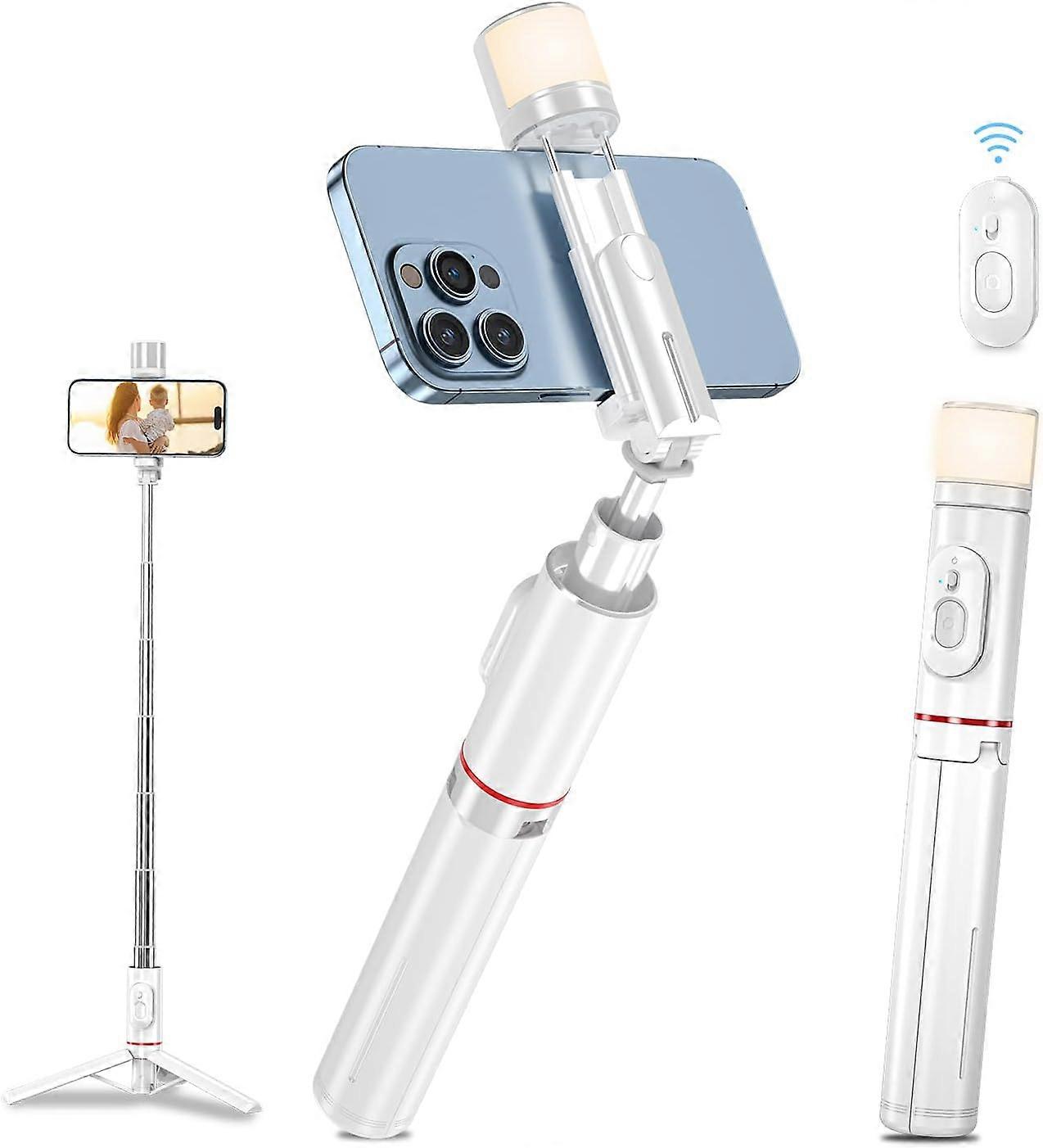 Bluetooth Selfie Stick Tripod with Light Fill, 3-in-1 Extendable Aluminum Selfie Stick with Detachable Wireless Remote, for iPhone 15/13/12/11 Pro/X