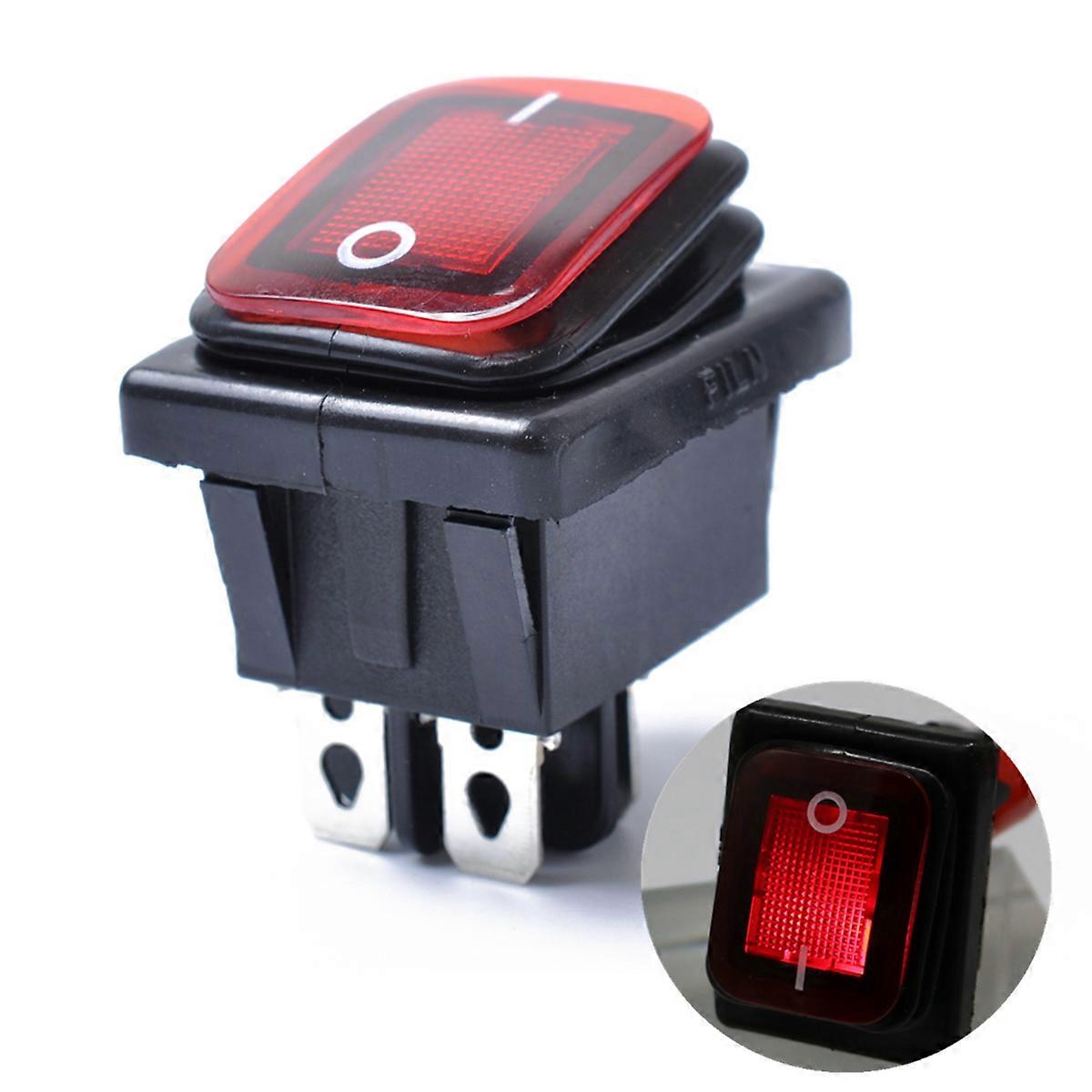 This item is universal for automobiles and devices equipped with a 12 Volt DC power source. Made of , it is easy to setup and durable for usage. It protects against dust and against low pressure . This can replace your old or Features - Light Color: Red. - Material: Plastic and metal. - Size: 3.8x2.8x4.2cm / 1.5x1.1x1.7inch. - Position: On- (Latching). - Rating Voltage: 15A 250VAC / 30A 125VAC. - Temperature -25+85&deg;C. - Resistance:<= 20 M&Omega;. - Insulation Resistance:&ge;100M&Omega;. - Lifetime: 10000times. - Number of Ports: 4 Pins. - Outer SILVER terminal to 12V DC power source. - Middle SILVER terminal to accessory/apparatus. - Outer SILVER terminal to ground. - Protected against dust and against low pressure . Package list: 2 Toggle On- 4 12V DC Boat Automobiles Waterproof LED Latching ( )