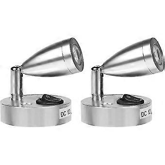 2 قطعة 3 واط 12 فولت أدى ضوء القراءة لسيارة متنقلة قافلة القارب ، مع مفتاحها الخاص ، ضوء أبيض دافئ ، 3000 كيلو ، 220 لومن ، 60 * 96 مم ، فضي