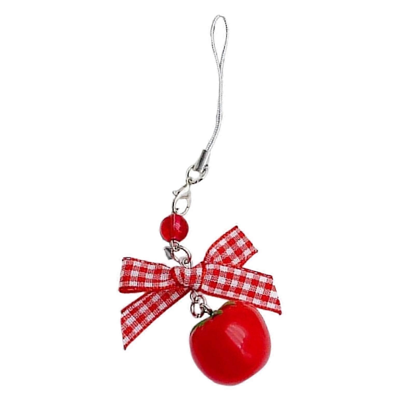 Bowknot Phone Charm Tomato Bag Pendant Stylish Accessory Strawberry Phone Lanyard for Phone Keychain Bag Decoration