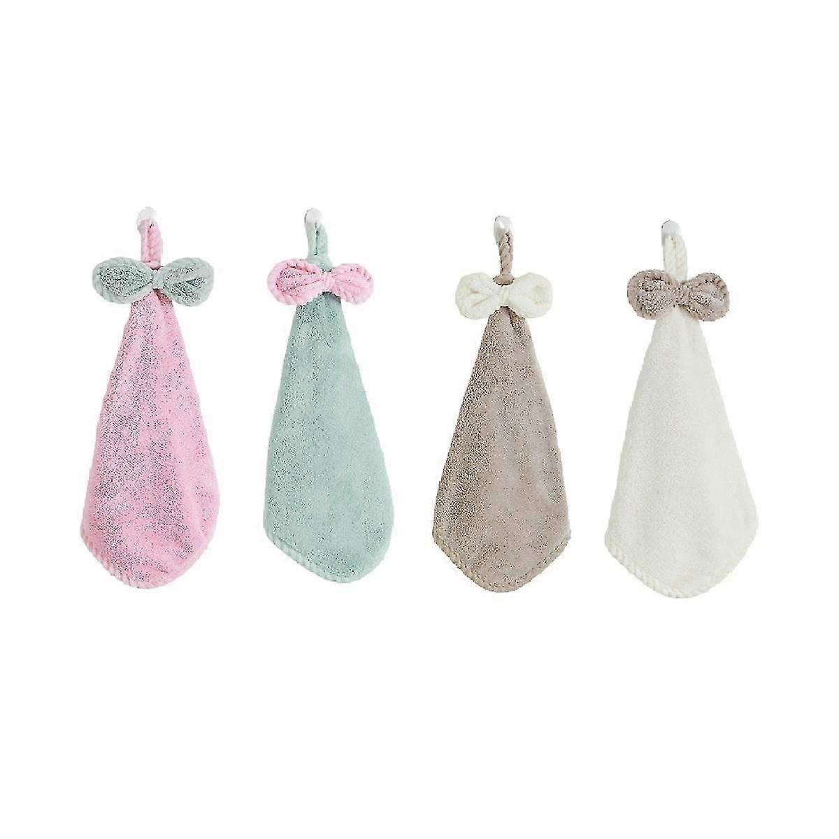 Bowknot Hanging Hand Towels, Coral Fleece Hand Towels With Hanging Loop, Wall Mounted Hand Towels F