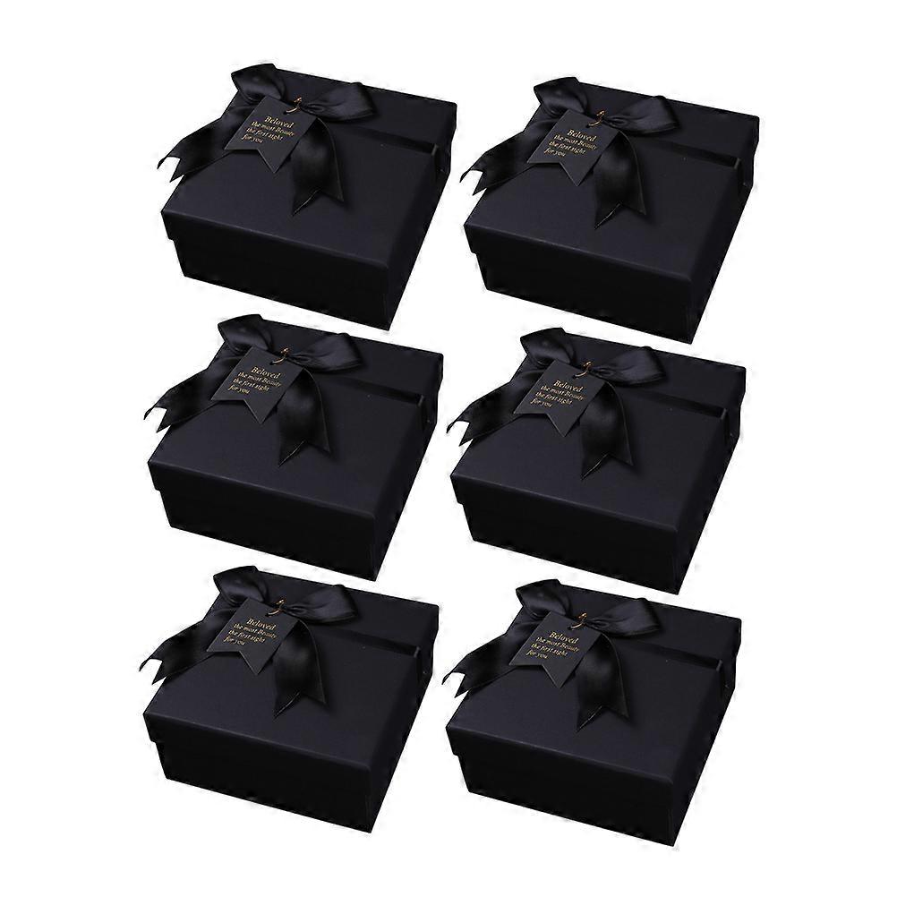 Bowknot Gift Box Chic Style Paper Material for Party Favor Small Gifts 15x15x7 Cm Black 6Set