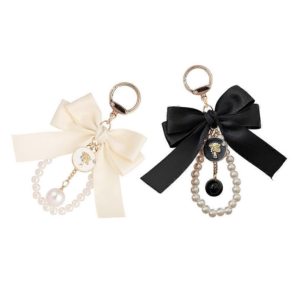 Bowknot Keychain with Pearl Tassel, Stylish Keyring Charm for Bags and Cars, Unique Design Functional Accessory for Keys Organization