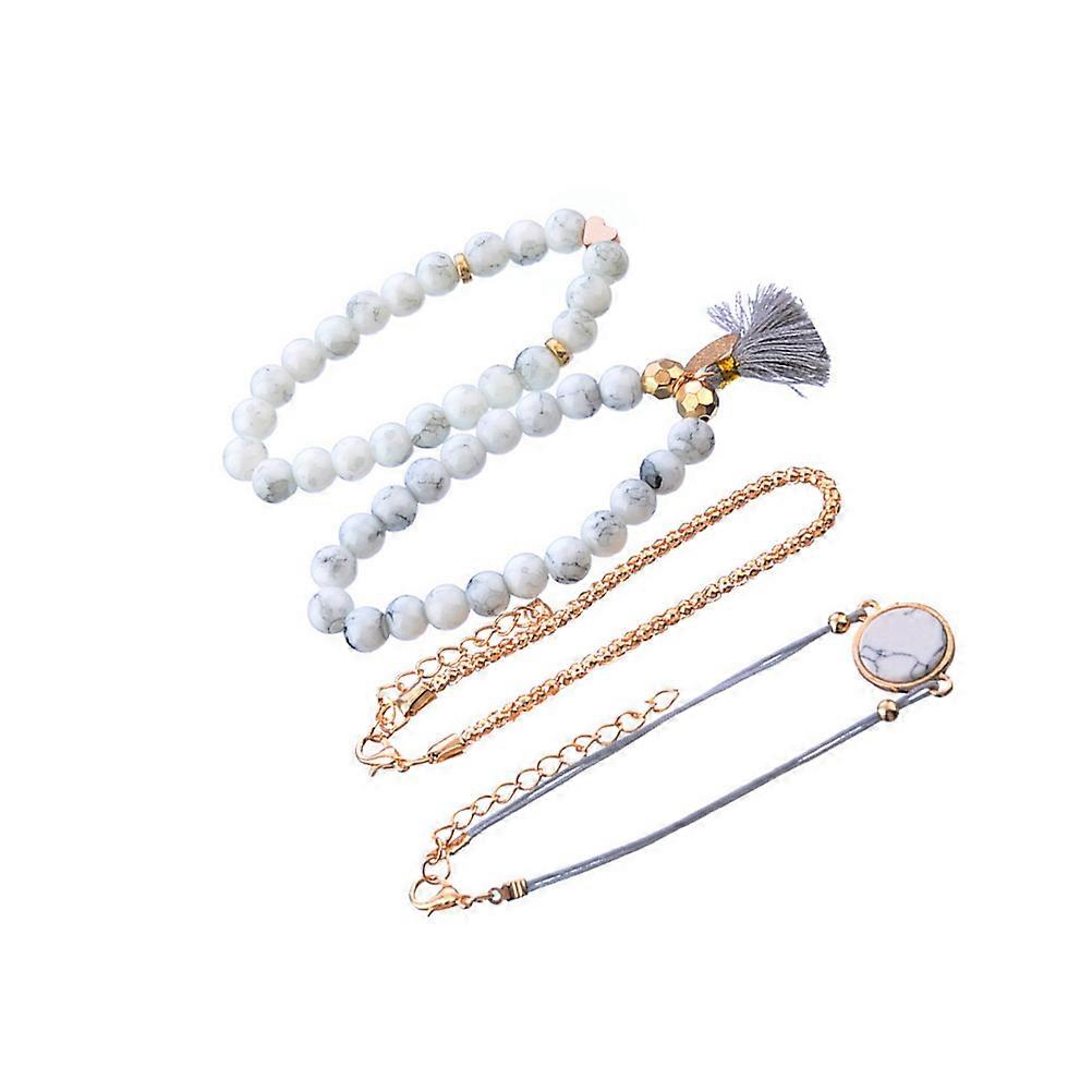 Bracelet Set Marble Beads Function with 4Pcs Tassel Charm Bangle
