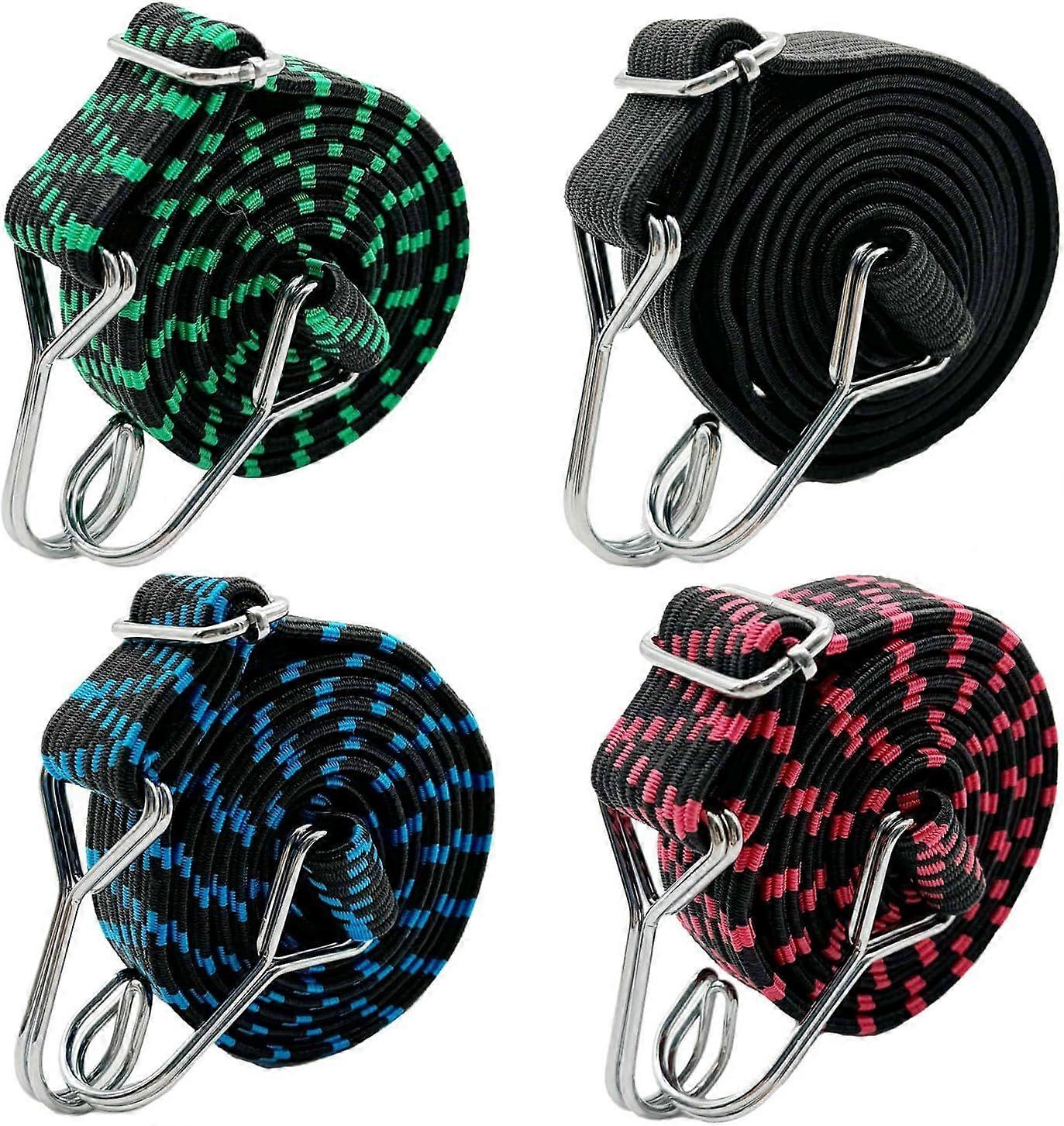 Bungee Cords Straps with Hooks - 2m 4 Pack Adjustable Elastic Bungee Cord Heavy Duty Bungee Straps