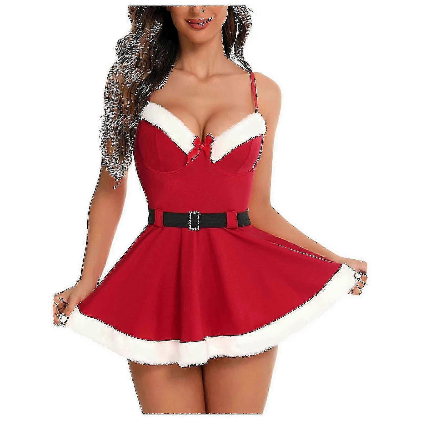 Bxhd Sexy Christmas Lingerie For Women Santa Babydoll Chemise Sleepwear Dress Teddy