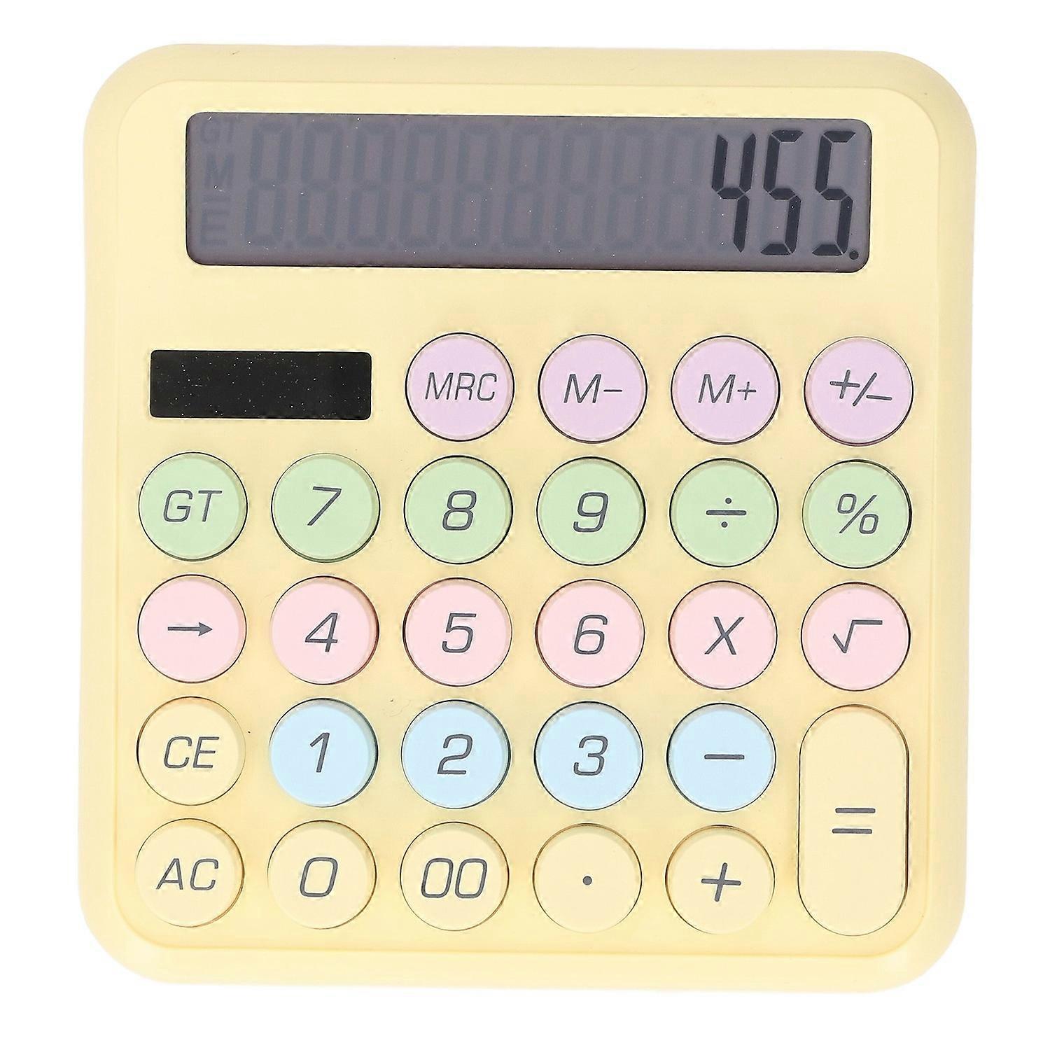 Calculator Solar Battery Powered 12 Digit 5 Inch LCD Display Round Large Keys Portable Calculator fo