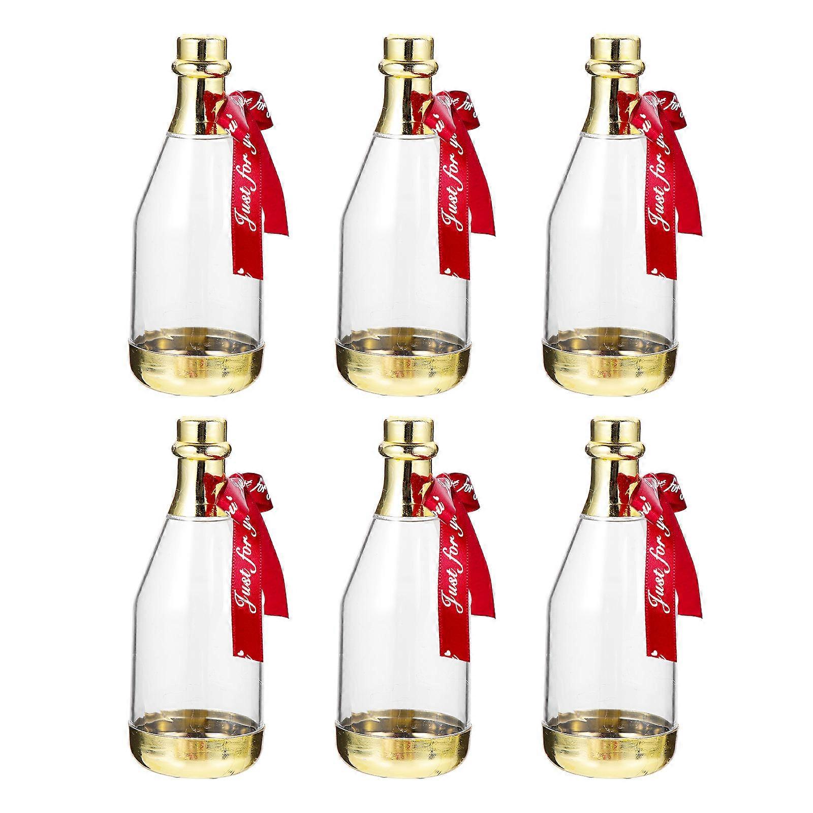 This is a nice-looking candy container made from material. Simulation bottle shape, you can use it to store your wedding candy, chocolate and so on. Light weight, easy to take, suitable for many places such as home, office, hotel, restaurant, food store, etc, play a better decorative effect. Features - Color: golden(bottle); dark red(ribbon). - Material: , fabric. - Size: 11.50X4.50X4.50cm /4.52X1.77X1.77inch. - material its durability, will not easy to deform or break, this container can be used for a long term. - With the creative simulated bottle shape in visible design, you can see what's inside . - It can be both a practical wedding candy box and also a wedding decoration. - Nice weight, easy to take to anywhere you want, bringing you convenience. - Perfect for bridal showers, weddings, birthdays, baby showers, engagement parties, New Year's parties, or any other occasions. Package list: 6 x candy boxes