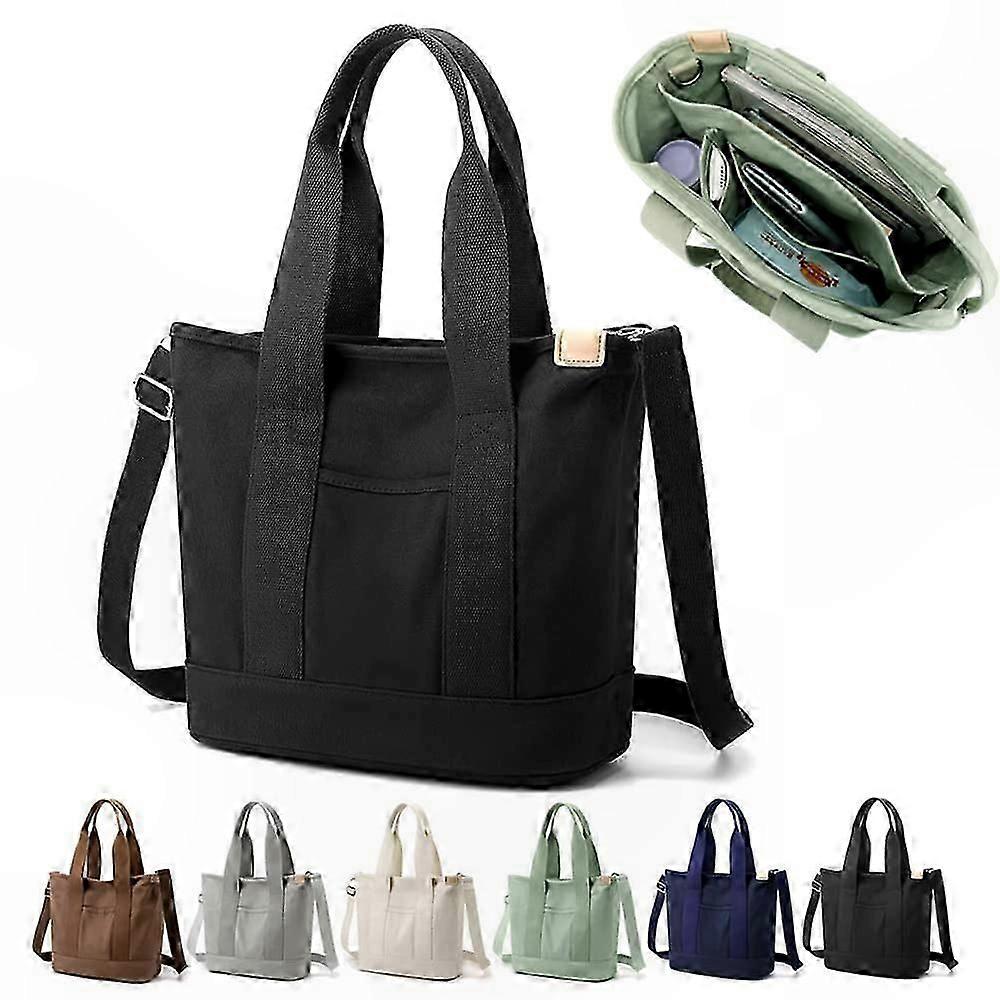 Canvas Tote Bag with Multiple Pockets and Compartments, Zippered Handmade Satchel for Everyday Use