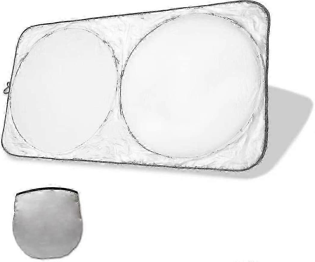 Car Windscreen Sun Shade: Our car front windshield sunshade was made of premium durable polyester material, providing better protection against Sun, UV and heat proof, and light and tough, not easy to tear.Universal Windshield Sun Shade: Our car front windshield sunshade size is 150*70cm, suitable for most cars, the size is manual measured, please maeasure your car windscreen the size before purchasing, find your optimal size.Easy to Use: Car sun shade front windshield can installed and folded in seconds without any tools required, just open the it and put on the front window glass of the car and fix it with the sun visor, make It convenient for daily use.Keep Your Car Cooler: Car sun shade windscreen with silver reflective cover can reflect ultraviolet rays, black side isolate heat conduction, keep the car interior and seats cool, the inside temperature is much lower than the outside, protect car interior from aging.Easy to Store: Car sun shade folding design with elastic band by side, when the sunshade is not in use, you can fold them back and store the sunshades inside the storage bag, store your Car sunshade in your door pocket, behind your car seat or behind your sun visor, saving space. Car Windshield Sunshade, Windscreen Sun Shade Windshield Sunshade Blocks UV Rays Sun Visor Protector Fits Windshields of Various Sizes (150*70 cm)