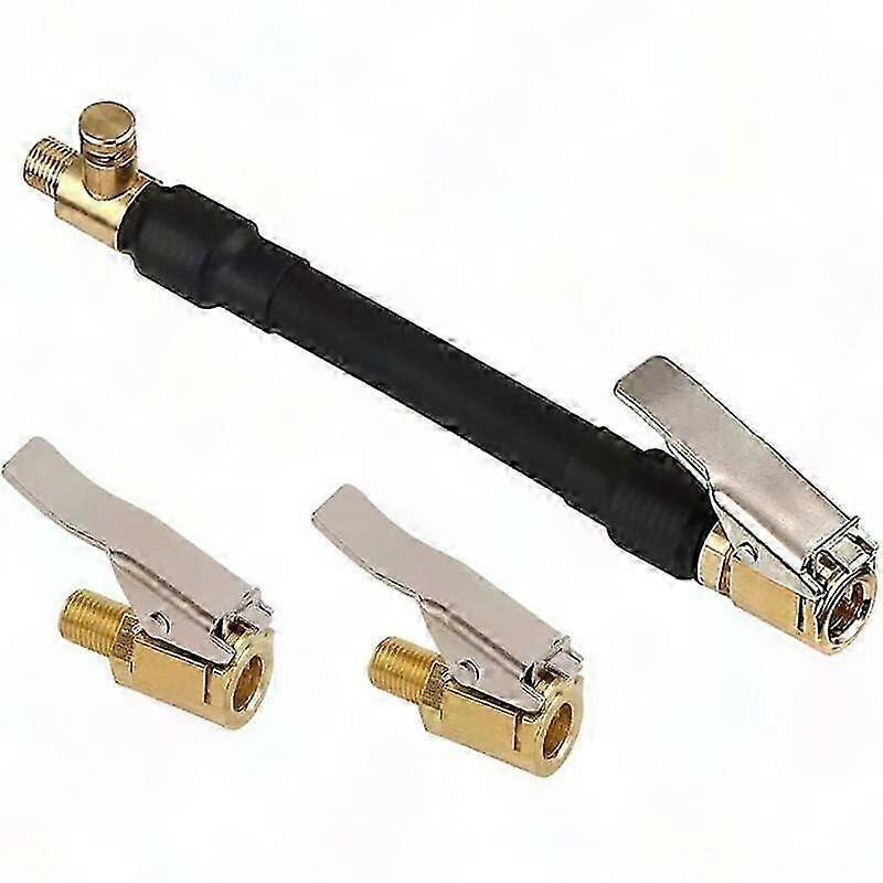 Car Tire Valve Adapter with 2 Brass Inflator Nozzles, Tire Inflator Pump Hose for Air Compressor