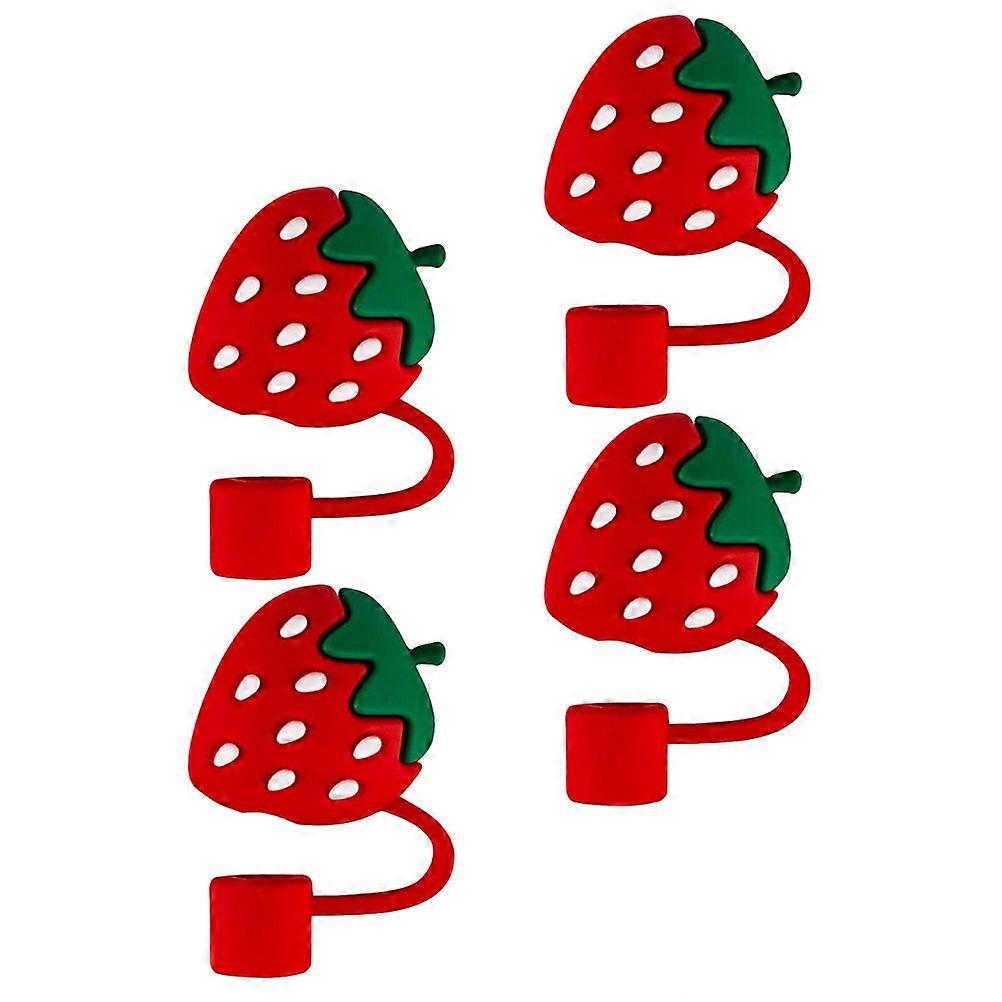 Cartoon Design Strawberry Shaped Straw End Plugs 20 Pcs Reusable Caps For Parties And Picnics With A Stylish Red Color