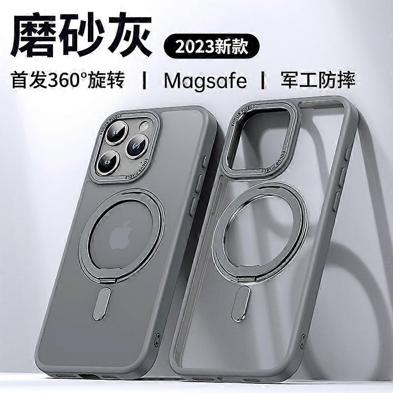 Case for iPhone 17 Pro Max Gray Transparent Rotating Stand Magnetic Adhesion