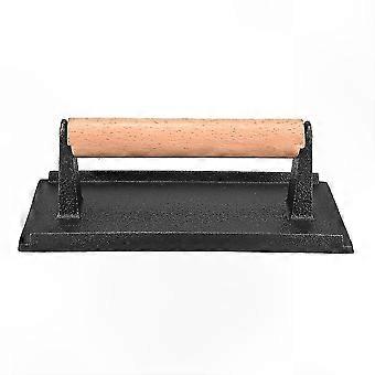 Cast Iron Grill Press with Wooden Handle for Steak, Bacon, and Hamburger